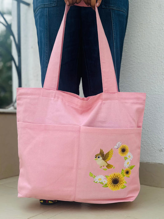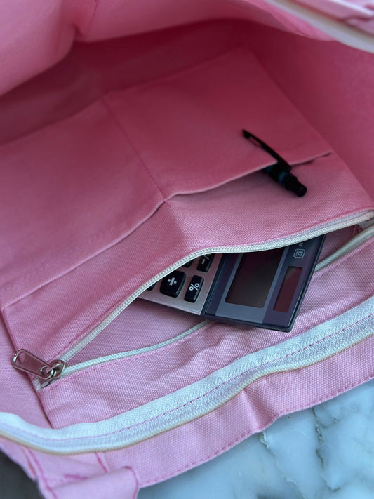 Horizontal Pink Library Tote bag | Cotton Canvas