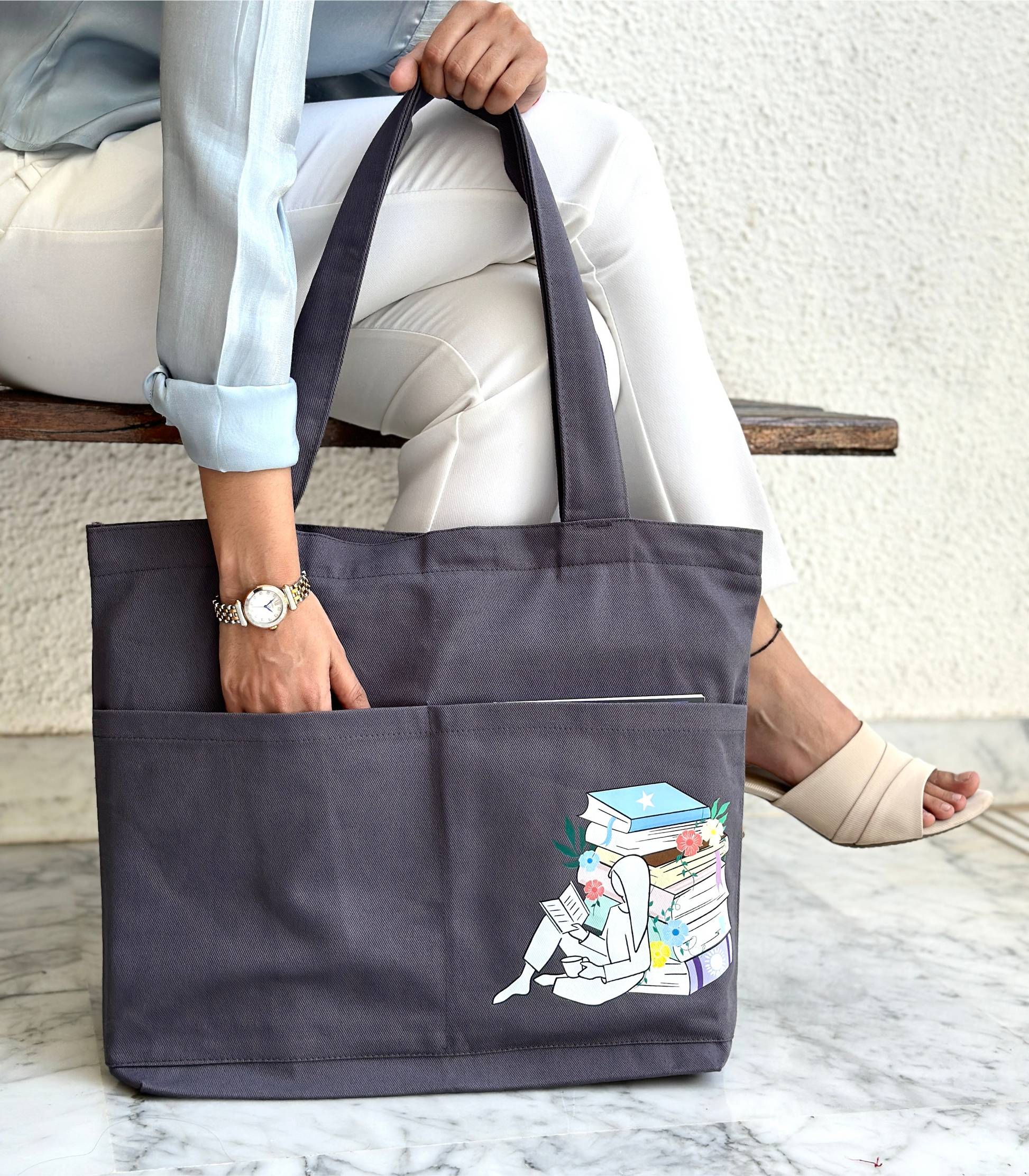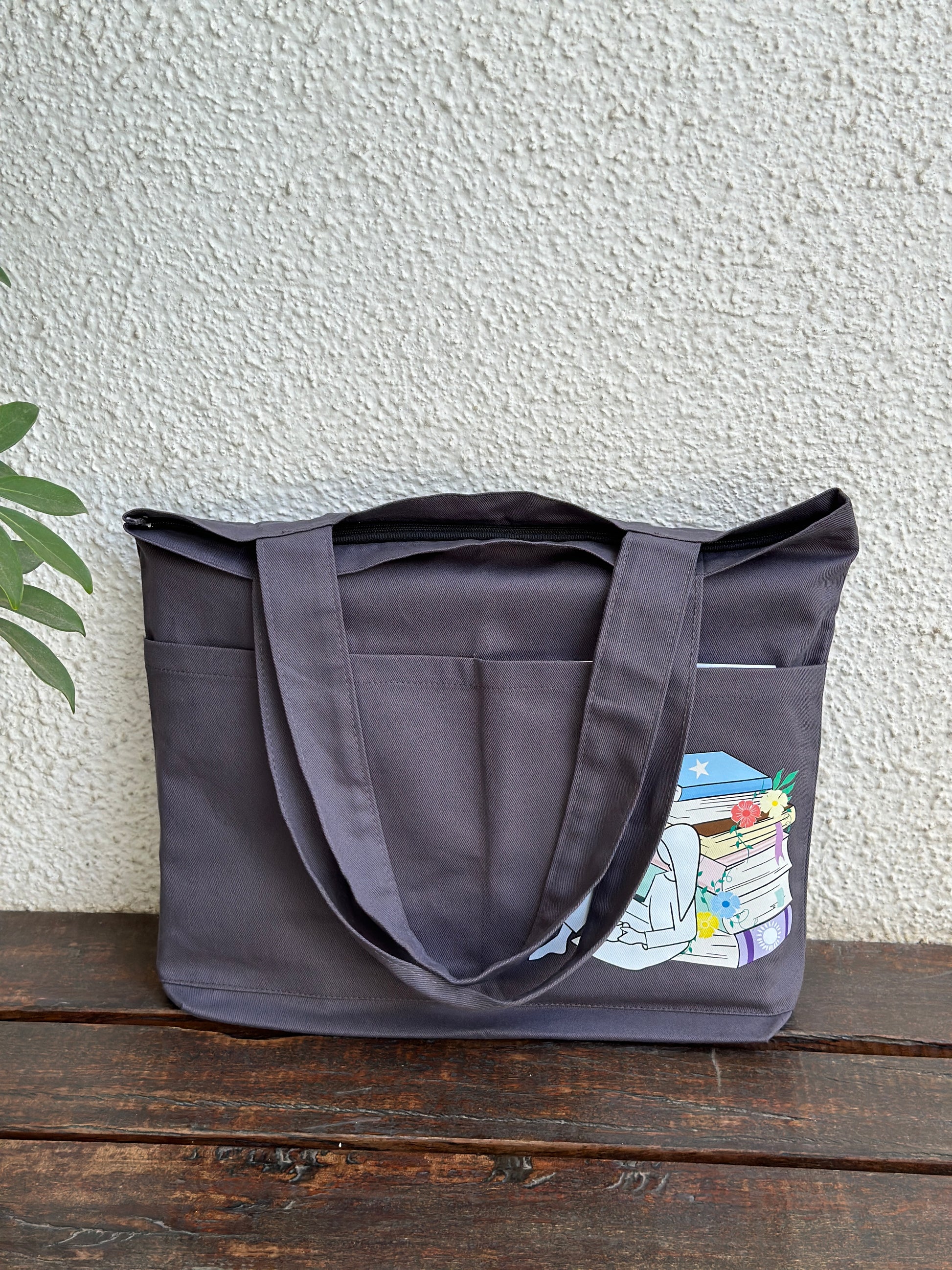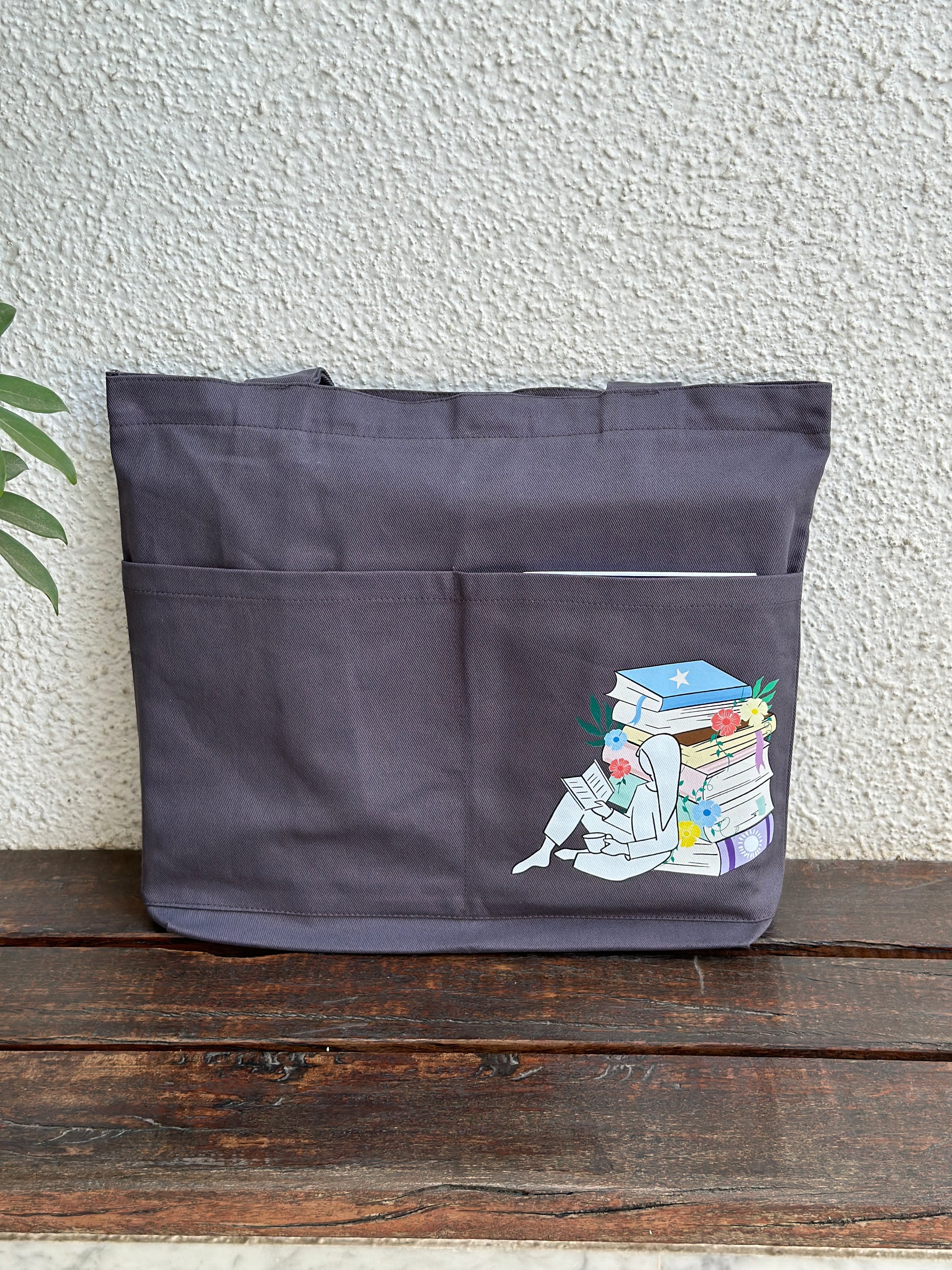 Grey Library Tote bag| Horizontal| Twill Cotton
