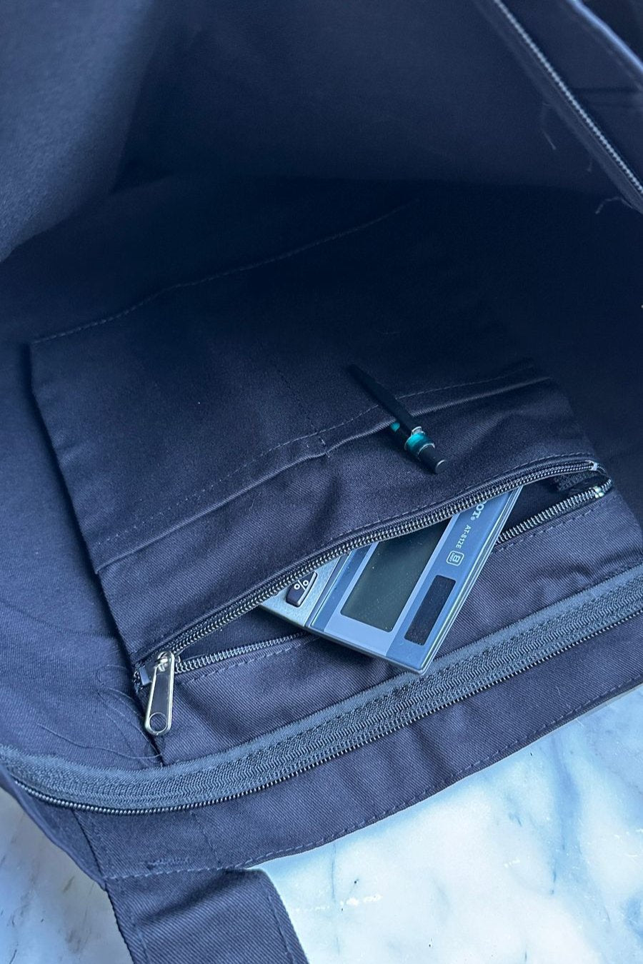- Top main zipper