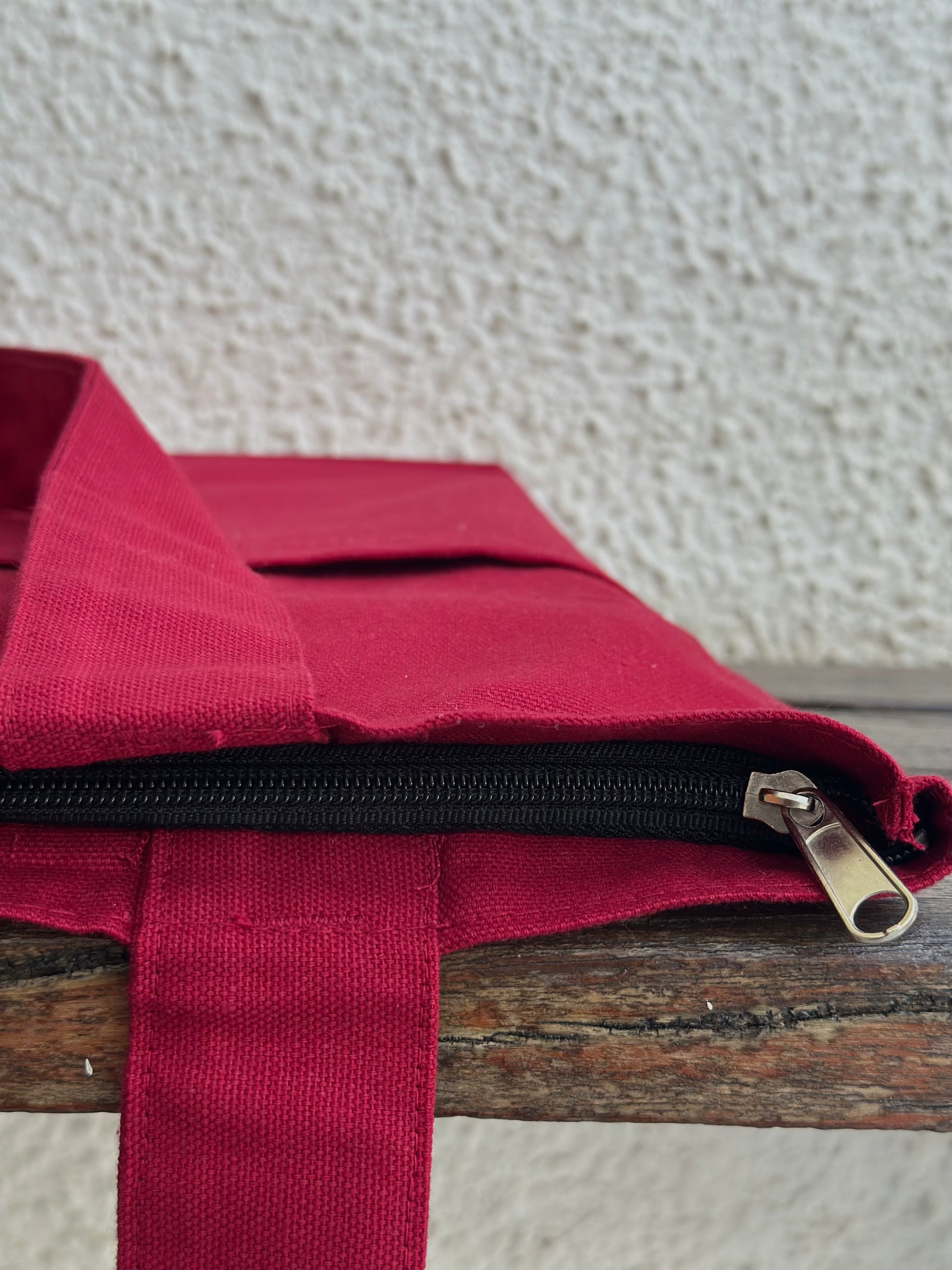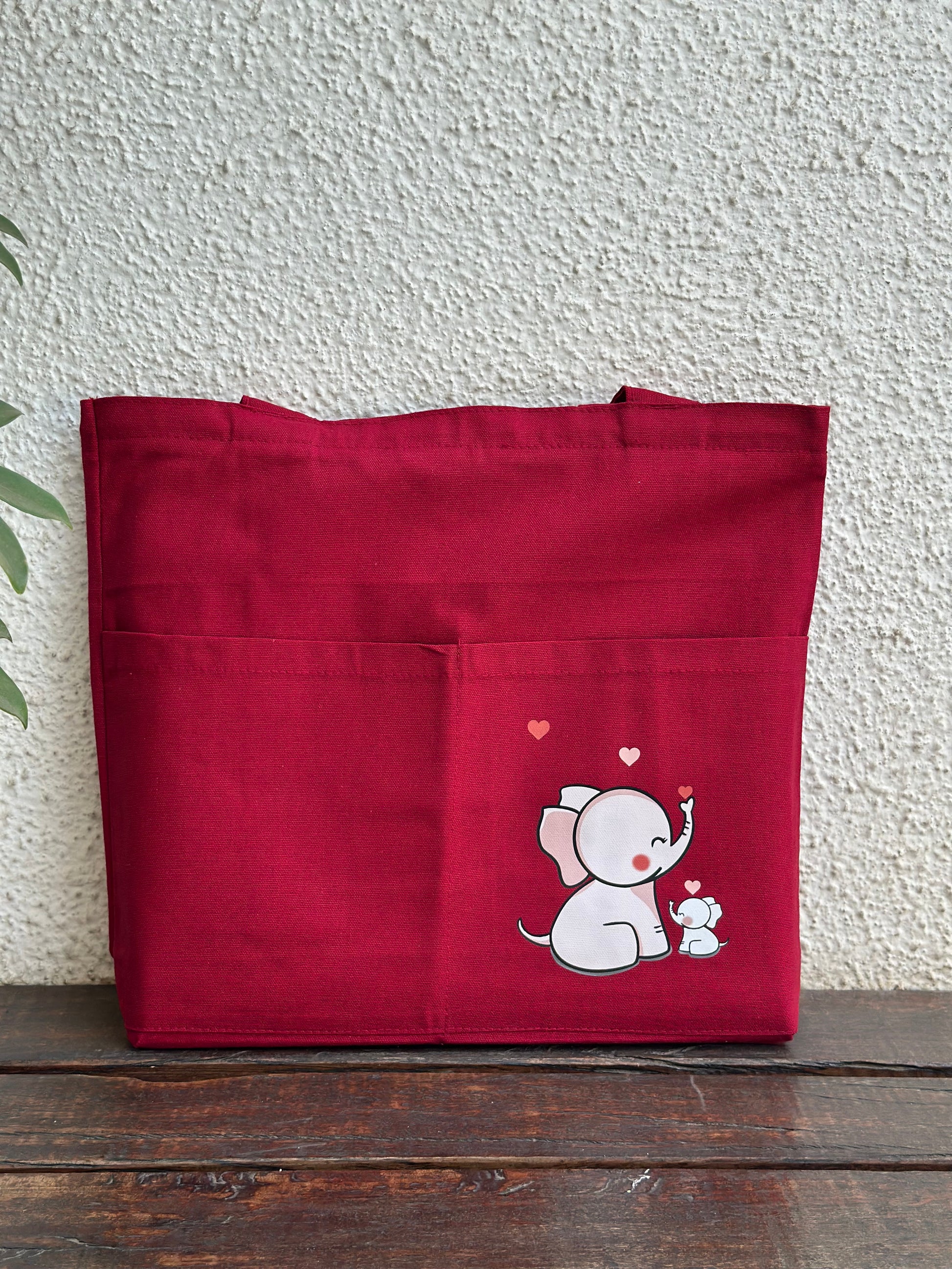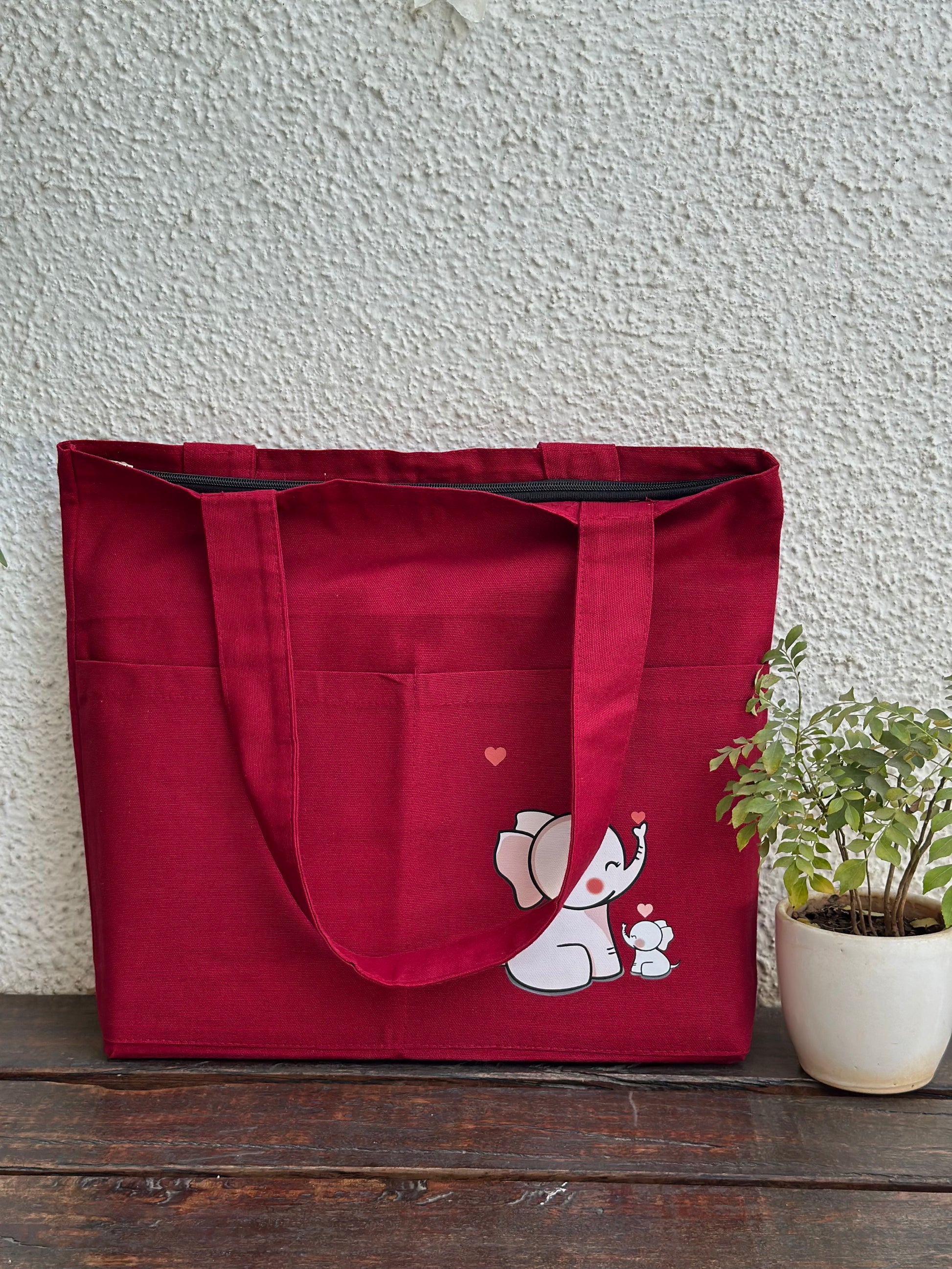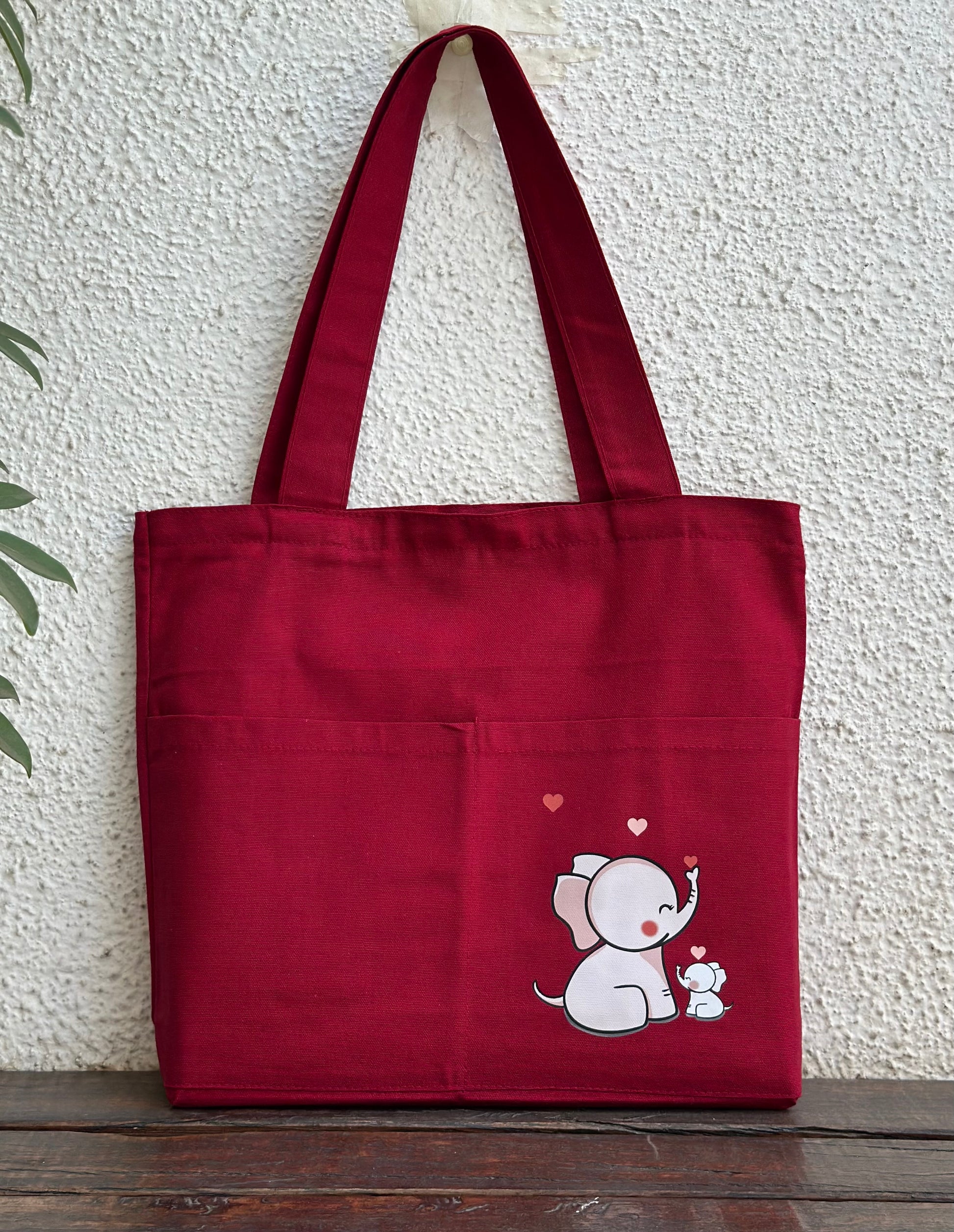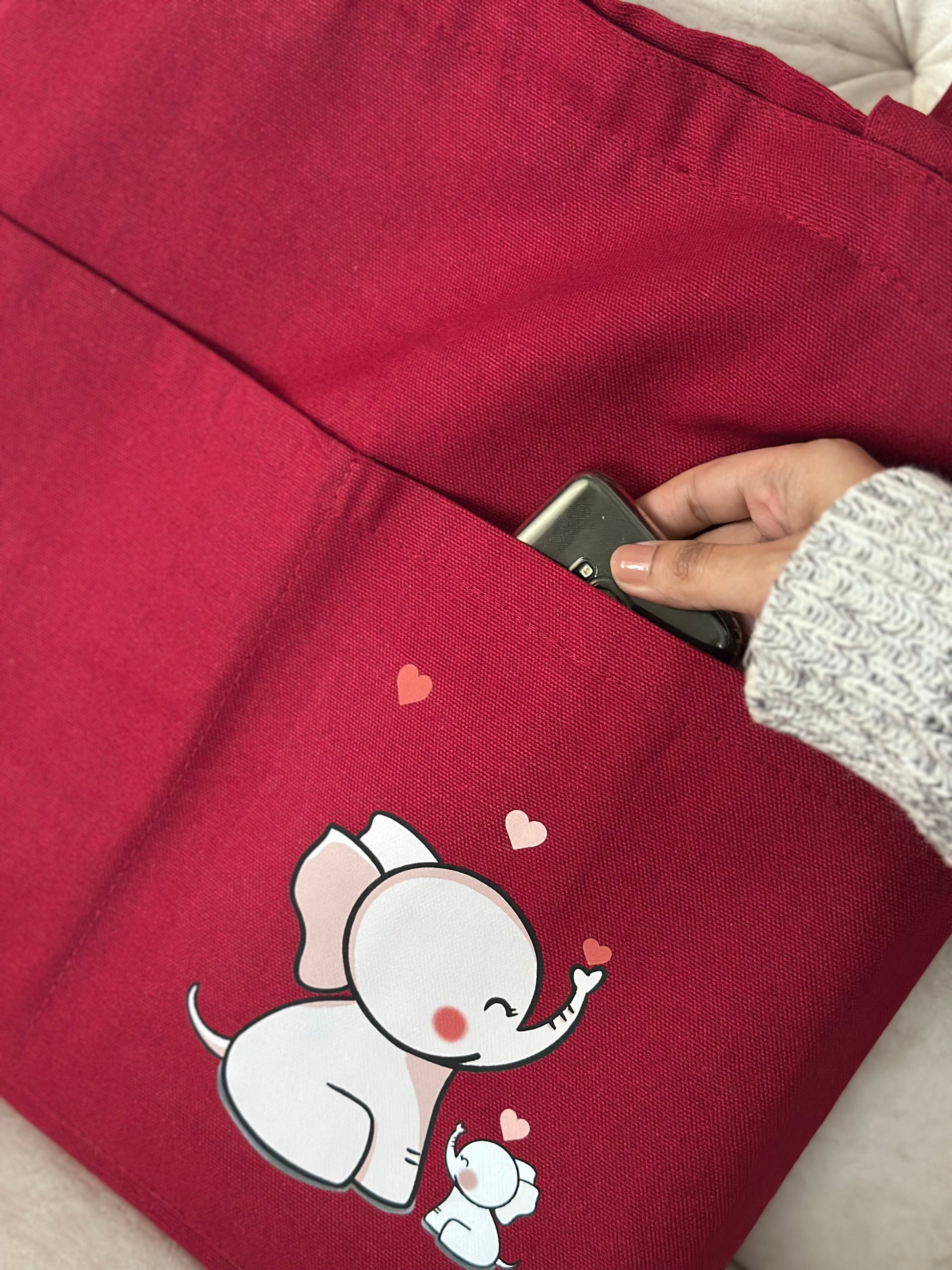 Horizontal: Elephant Maroon tote bag | Cotton Canvas