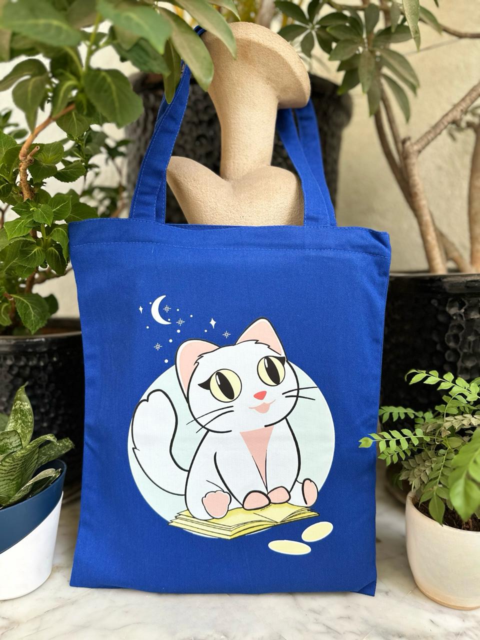 Vertical Royal blue Kitty Tote Bag| Twill Cotton