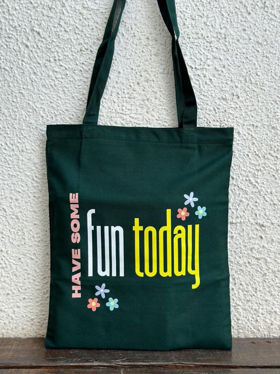 Vertical Dark Green Have some fun today Tote Bag| Twill Cotton